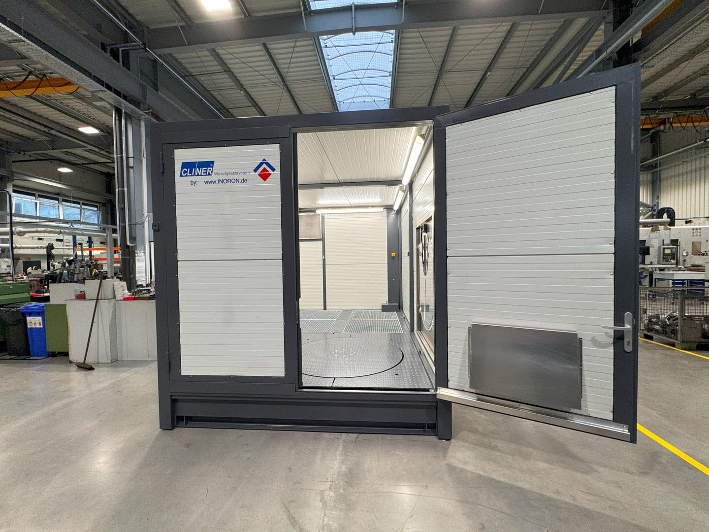 Auch ein späterer Standortwechsel ist mit dem CLINER-Waschplatz ein Kinderspiel und in nur einem halben Tag erledigt. Die drehbaren Fenster und Drehteller sorgen für sicheres Arbeiten und tragen zur Reduzierung der internen Logistikzeiten bei.