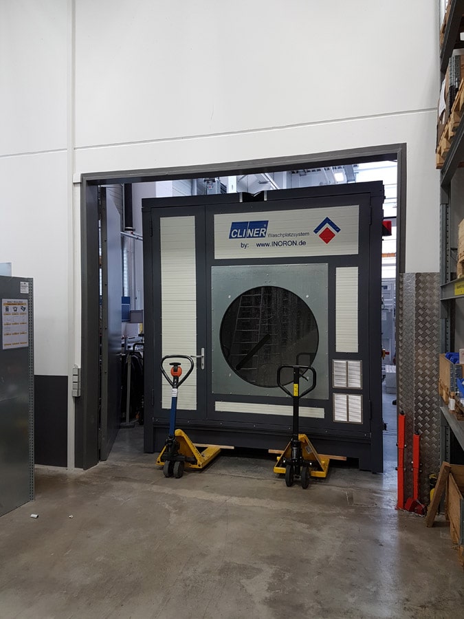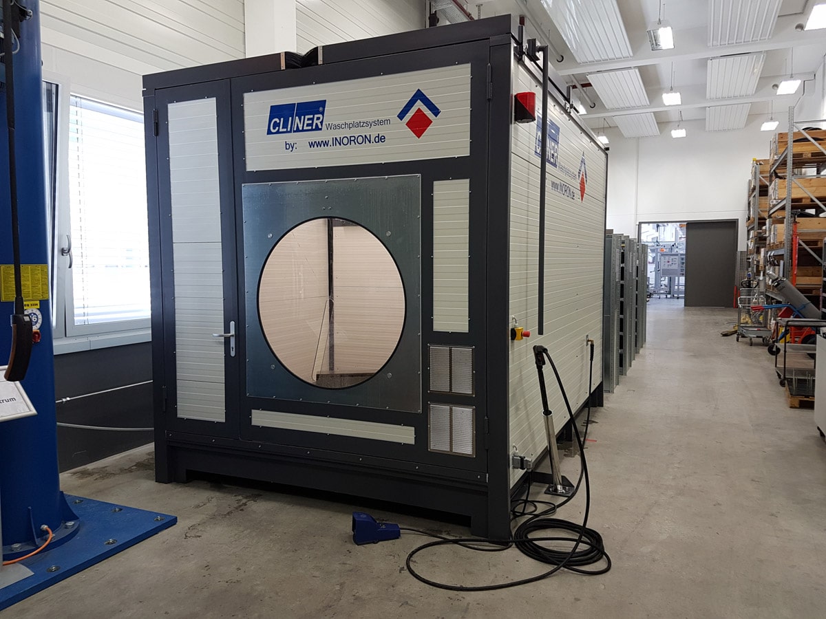 Deshalb suchte der Kunde nach einer Waschkabine, die er direkt in der Werkstatt aufstellen konnte und hat sich aufgrund des geschlossenen Systems für einen CLINER Waschplatz entschieden.