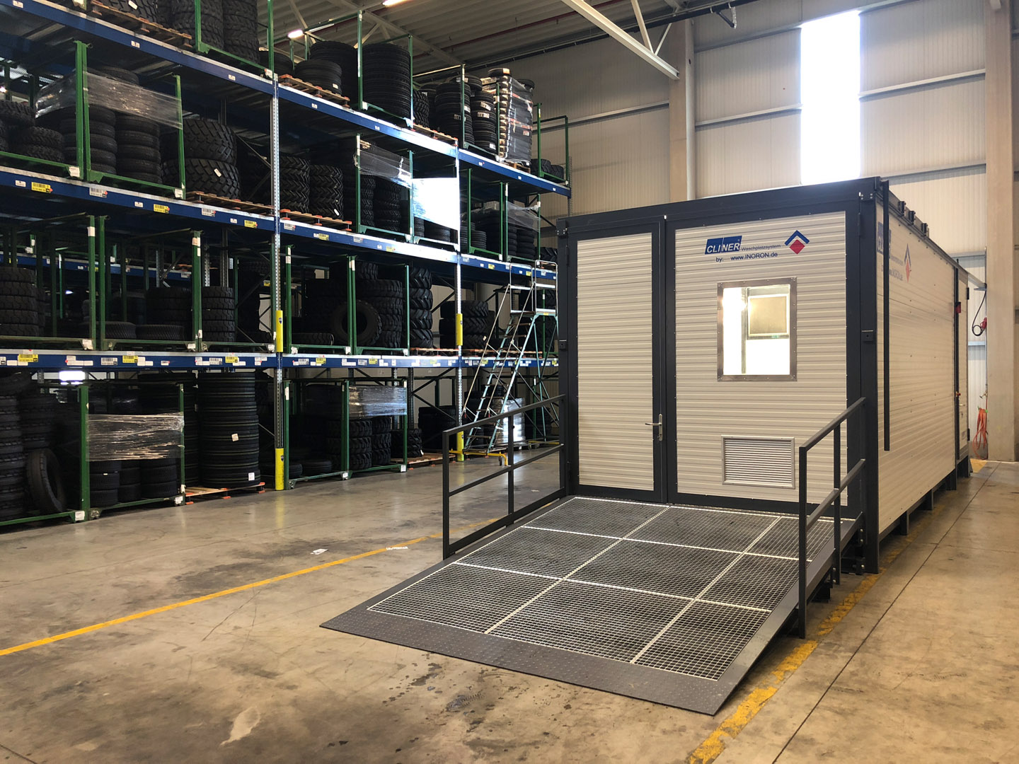 Unser Kunde, ein Logistikdienstleister, war auf der Suche nach einer Waschplatz-Lösung, um seinen Gabelstapler-Fuhrpark und andere Flurförderfahrzeuge zu reinigen. Eine große bauliche Maßnahme war aufgrund des damit verbundenen Genehmigungsaufwandes nicht gewünscht. Außerdem war der Wunsch den Waschplatz in die vorhandene Halle zu integrieren. Der CLINER Waschplatz ist eine ideale Lösung für diesen Kunden. Die Aufstellung war Dank des geschlossenen Wasserkreislaufs ohne weiteres in der vorhandenen Halle möglich. Dank der mobile Bauweise ist ein späteres Verstellen der Anlage ohne größeren Aufwand realisierbar.