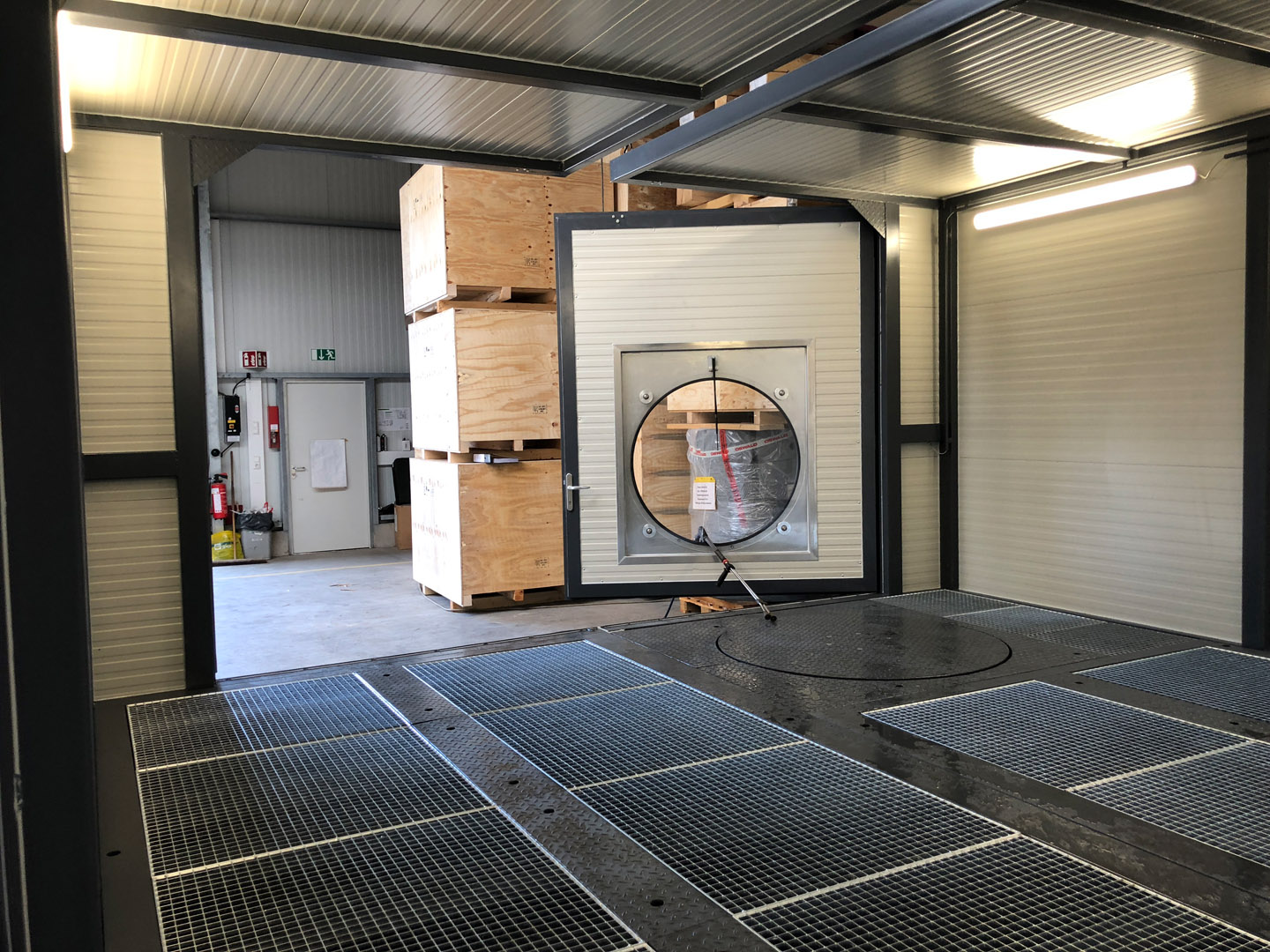 Im Zuge des neuen Waschplatzes sollten auch die Arbeitsbedingungen für die Mitarbeiter verbessert werden. Was zu dem Thema Arbeitsschutz Hochdruckreiniger zu beachten ist haben wir für Sie in einem separaten Artikel zusammengefasst. Für kleinere Bauteile hat der Kunde die Kombination von Rotationsfenster und Drehteller gewählt. Kleinere Bauteile können per Gabelstapler oder Ameise in den Waschplatz eingebracht werden. Der Bediener kann die Teile von außerhalb mit dem Hochdruckreiniger reinigen.