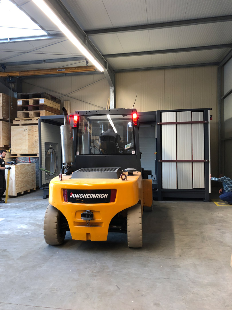 Durch die modulare Bauweise vergehen von Anlieferung bis hin zur Inbetriebnahme nur wenige Stunden. Wenn sich die räumlichen Anforderungen des Kunden ändern kann die Anlage genau so schnell demontiert und an einem anderen Standort wieder in Betrieb genommen werden.