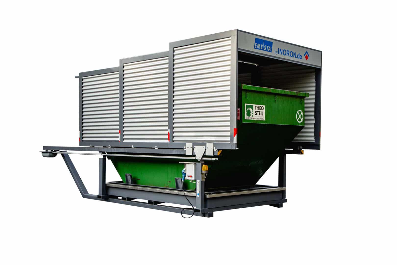 Genau hier setzen wir bei INORON an. Unsere EMESTA Containerstellplatz-Systeme sorgen bereits heute für gesetzeskonforme, umweltsichere und diebstahlgeschützte Lagerung von Rest- und Abfallstoffen – WHG-konform, mit elektrischem Sektionaldach und Schutz vor Regenwassereintrag.